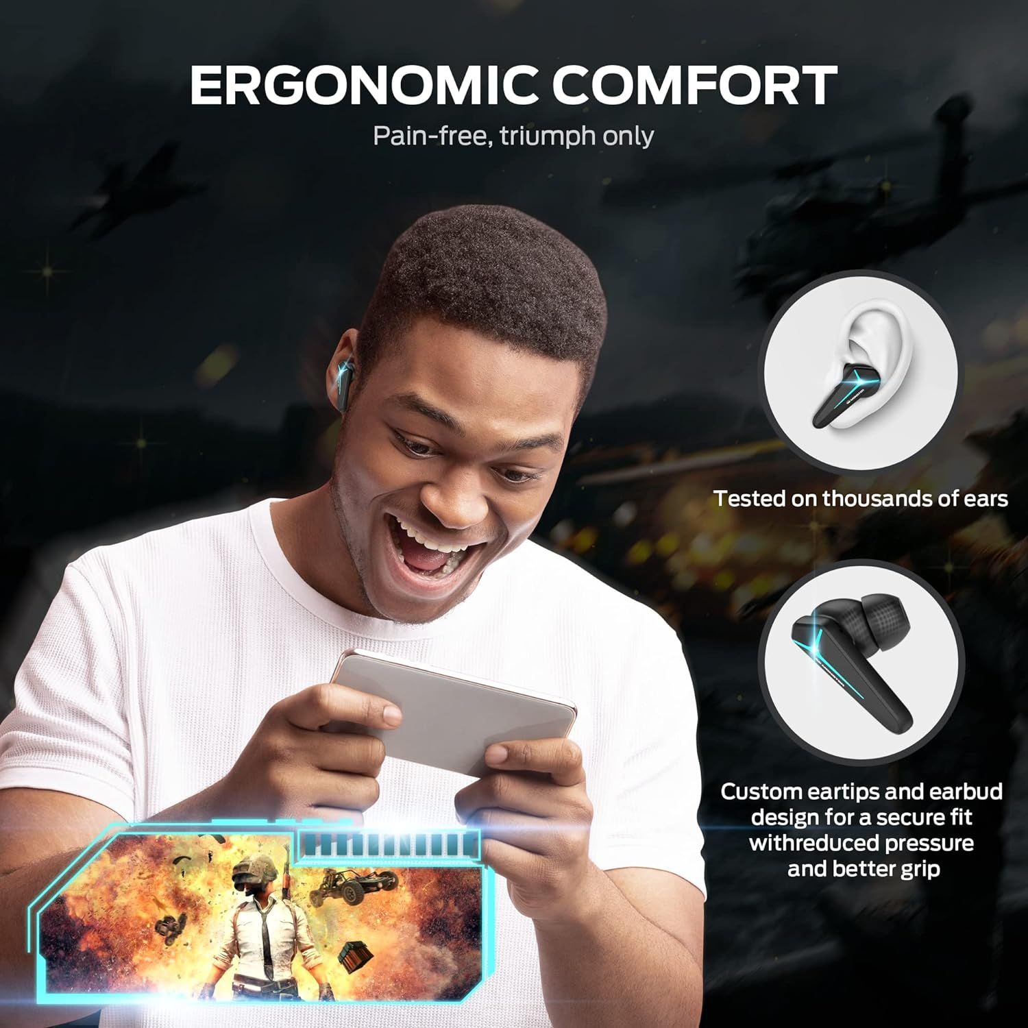 - 🎧【 Eye-Catching RGB Lighting & Mode Switching】 -- The Mission V1 earbuds are not just about superior sound; they also make a bold visual statement with their vibrant RGB lighting. These lights not only enhance the gaming ambiance but also elevate your listening experience. A quick triple-tap on the right earbud allows you to switch between gaming mode, which enhances spatial audio for a competitive edge, and music mode, which focuses on delivering a rich and balanced soundstage.